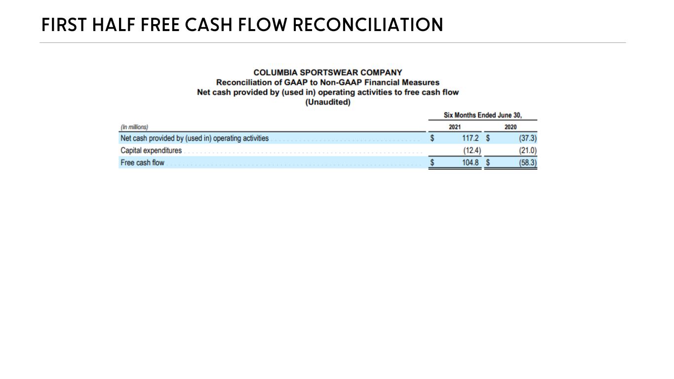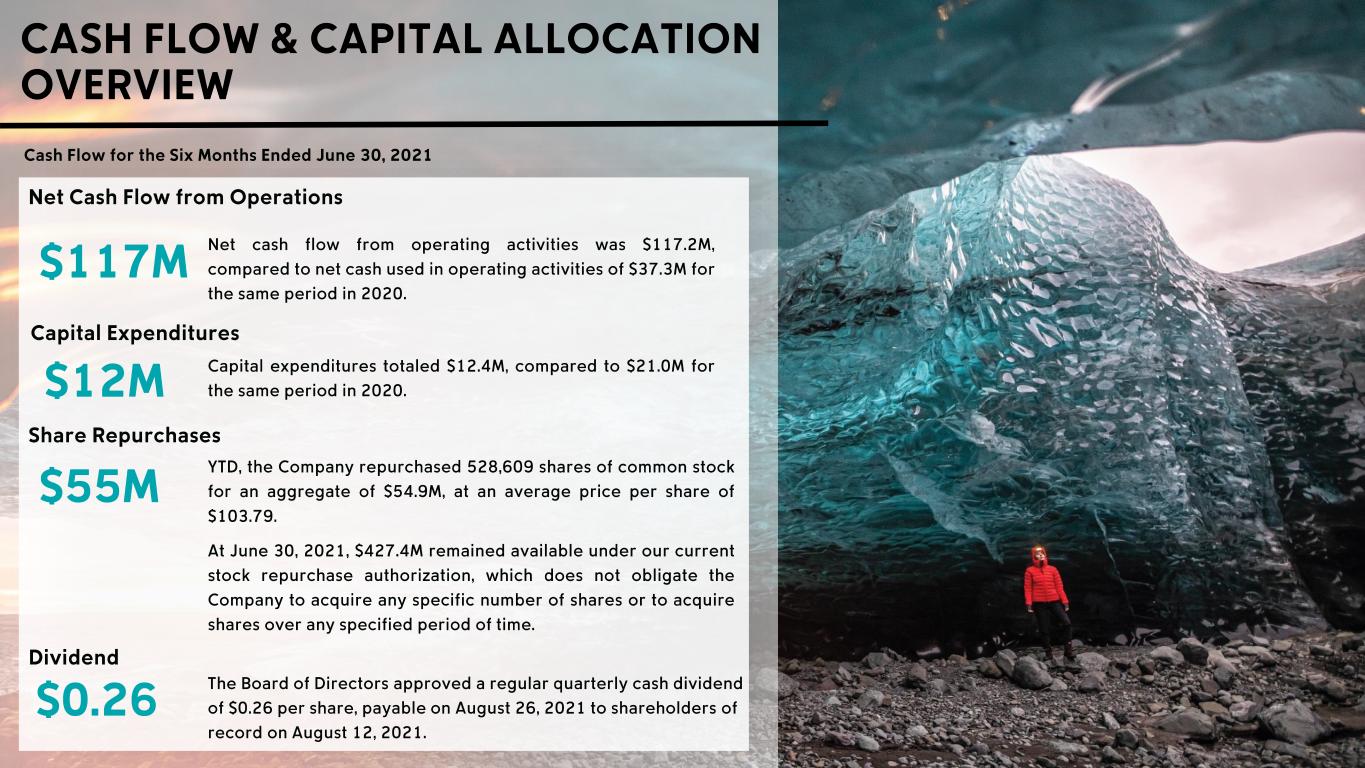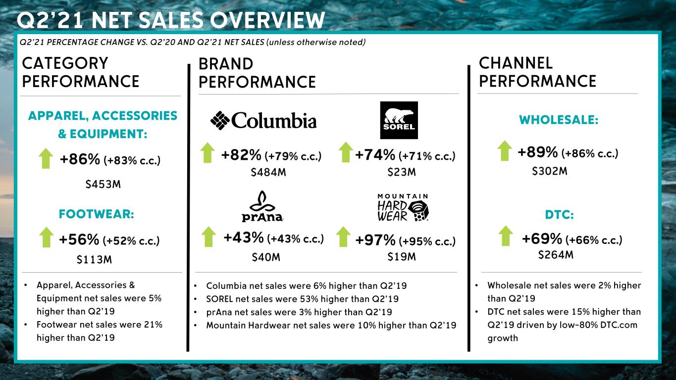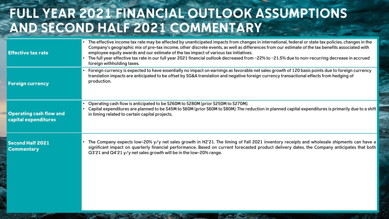 • • • Q2'21 Q2'20 Change Net sales $566.4 $316.6 +79% Gross margin 51.6% 46.2% +540 bps SG&A percent of net sales 46.2% 68.7% -2,250 bps Operating income (loss) $35.0 -$70.3 +$105.3 Operating margin 6.2% -22.2% +2,840 bps Net income (loss) $40.7 -$50.7 +$91.4 Diluted EPS $0.61 -$0.77 +$1.38