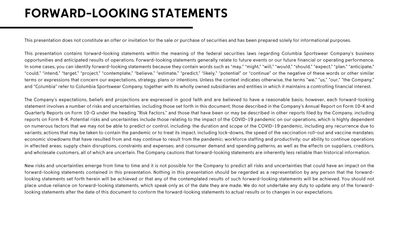 DTC DTC.com DTC B&M y/y U.S. LAAP EMEA SG&A EPS bps direct-to-consumer DTC e-commerce DTC brick & mortar year-over-year United States Latin America and Asia Pacific Europe, Middle East and Africa selling, general & administrative earnings per share basis points “+” or “up” “-” or “down” LSD% MSD% HSD% LDD% low-20% mid-30% high-40% increased decreased low-single-digit percent mid-single-digit percent high-single-digit percent low-double-digit percent low-twenties percent mid-thirties percent high-forties percent “$##M” “$##B” c.c. M&A FX ~ in millions of U.S. dollars in billions of U.S. dollars constant-currency Mergers & acquisitions Foreign Exchange approximately