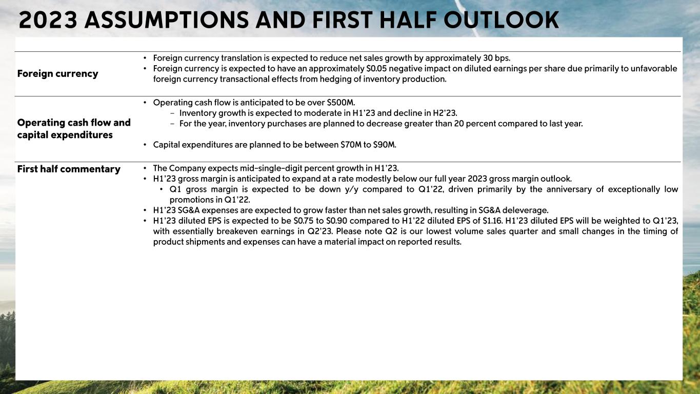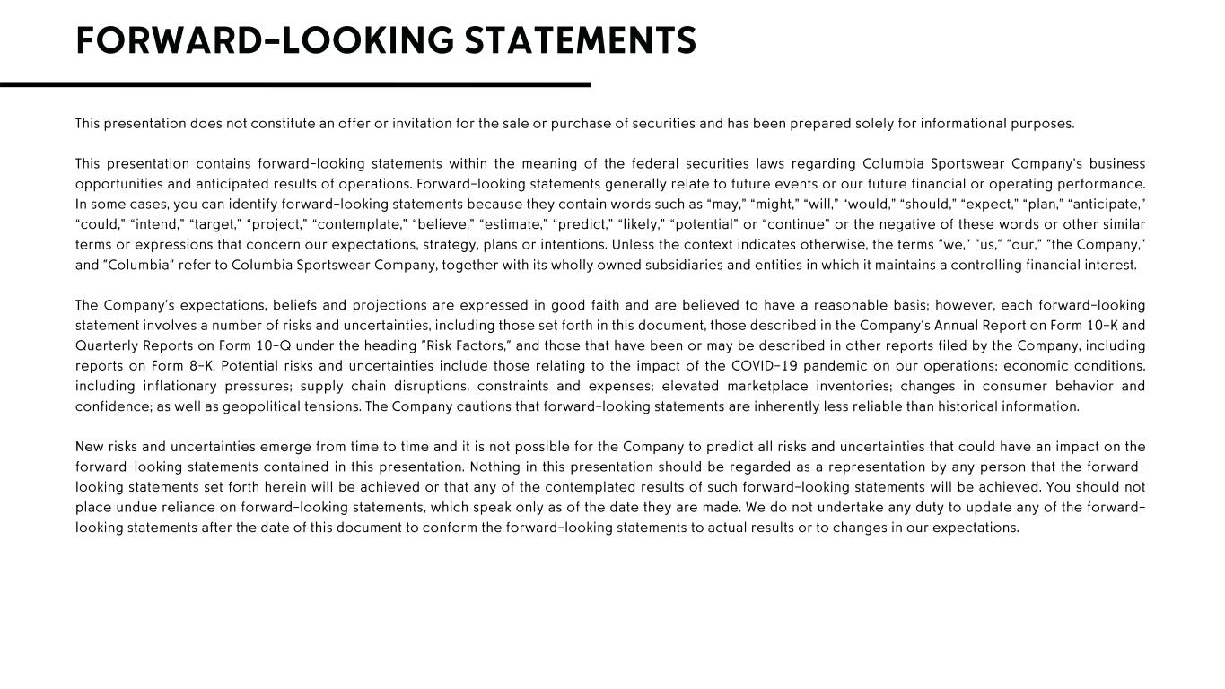 DTC DTC.com DTC B&M y/y U.S. LAAP EMEA SG&A EPS bps direct-to-consumer DTC e-commerce DTC brick & mortar year-over-year United States Latin America and Asia Pacific Europe, Middle East and Africa selling, general & administrative earnings per share basis points “+” or “up” “-” or “down” LSD% MSD% HSD% LDD% low-20% mid-30% high-40% increased decreased low-single-digit percent mid-single-digit percent high-single-digit percent low-double-digit percent low-twenties percent mid-thirties percent high-forties percent “$##M” “$##B” c.c. M&A FX ~ H1 Q1 in millions of U.S. dollars in billions of U.S. dollars constant-currency mergers & acquisitions foreign exchange approximately first half first quarter