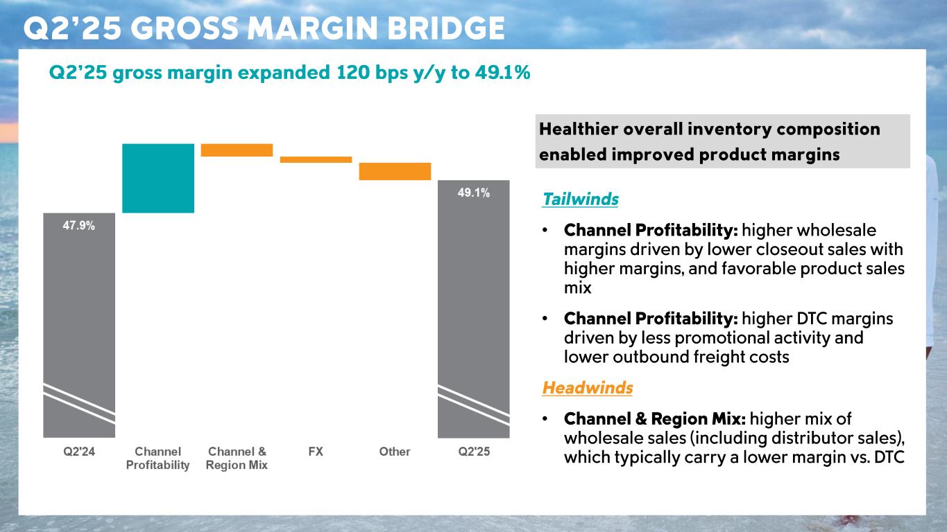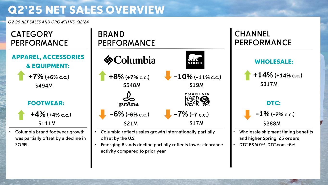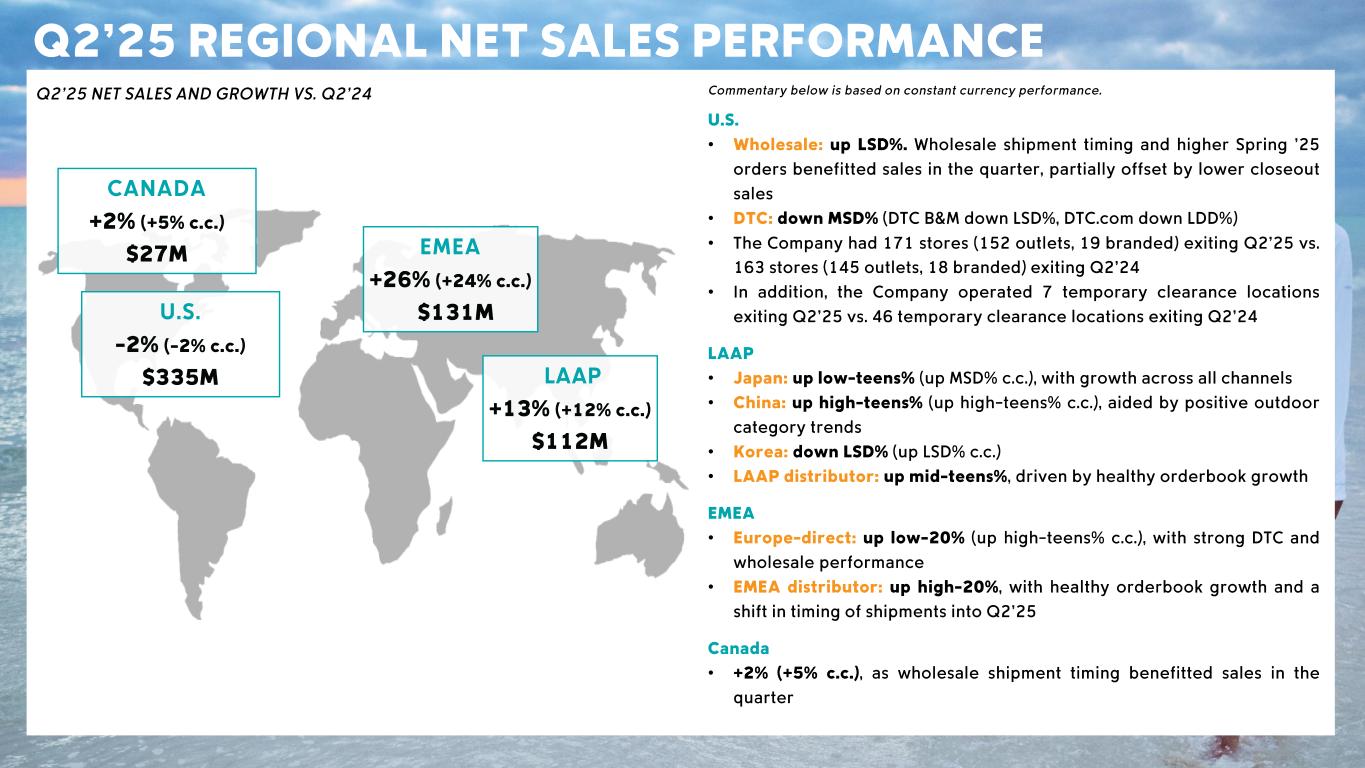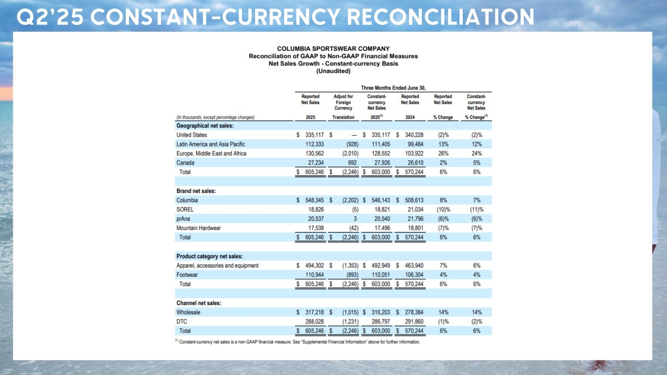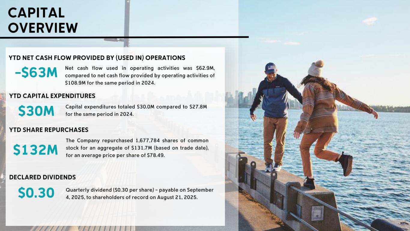 • • • • (dollars in millions, except per share amounts) Q2'25 Q2'24 Change Net Sales $605.2 $570.2 +6% Gross margin 49.1% 47.9% +120 bps SG&A percent of net sales 53.8% 53.1% +70 bps Operating loss ($23.6) ($23.8) +1% Operating margin -3.9% -4.2% +30 bps Net loss ($10.2) ($11.7) +13% Diluted EPS ($0.19) ($0.20) +5%